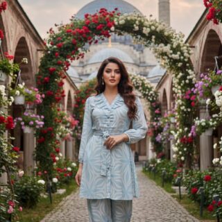 LIGHT BLUE WESTERN DRESS LADIES SHAFOON