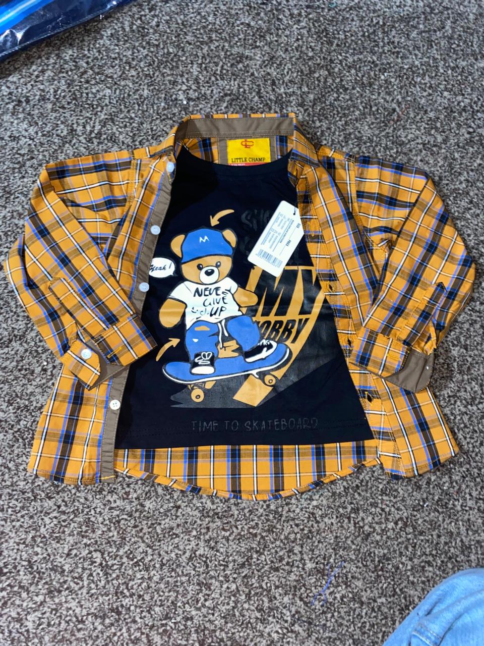 DOUBLE MUSTARD CHECK BOY COTTON SHIRT