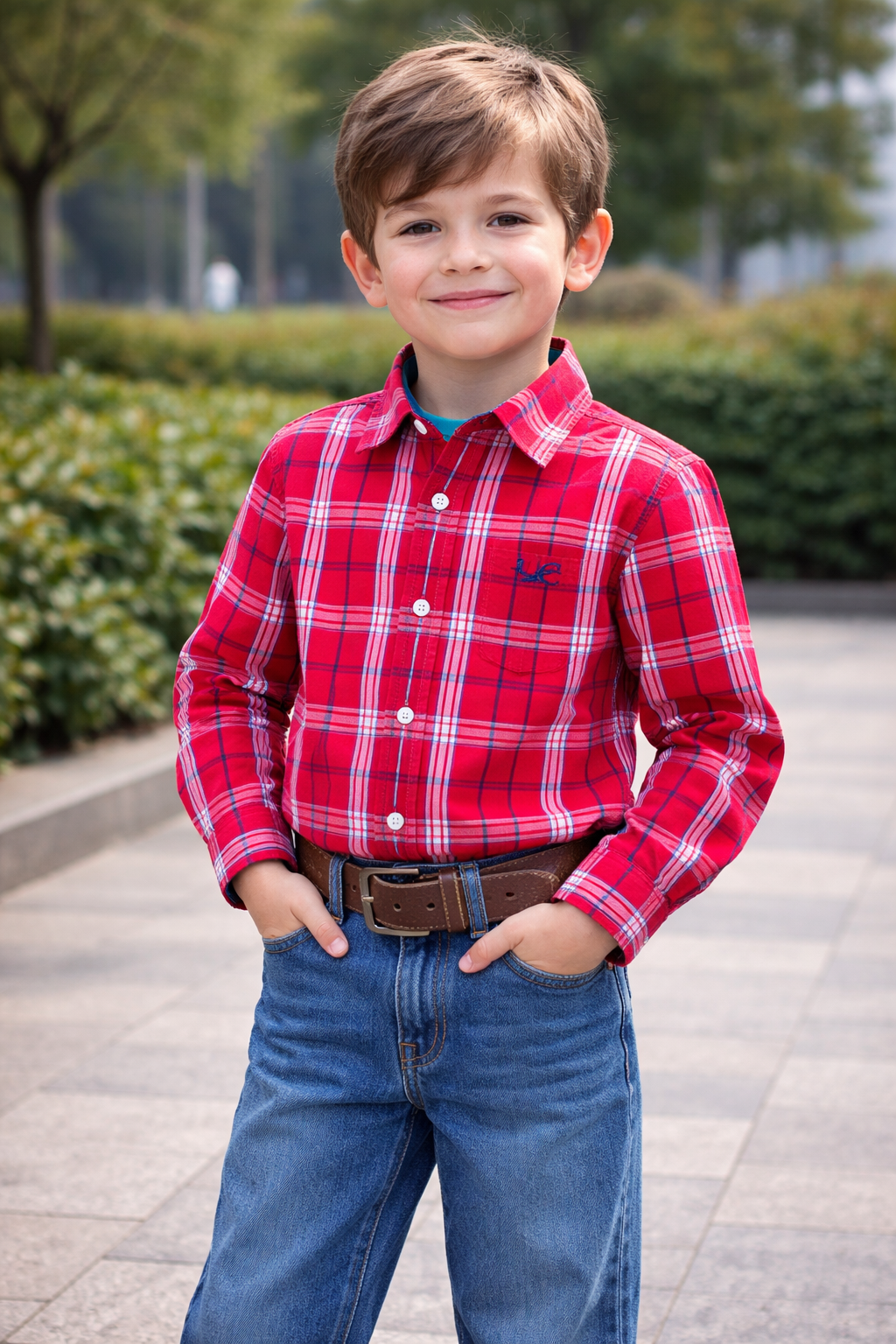The classic check pattern and neat stitching give it a stylish yet professional appearance, ideal for casual outings, family gatherings, school events, or everyday wear. The lightweight fabric ensures easy movement and keeps your child comfortable in every season.